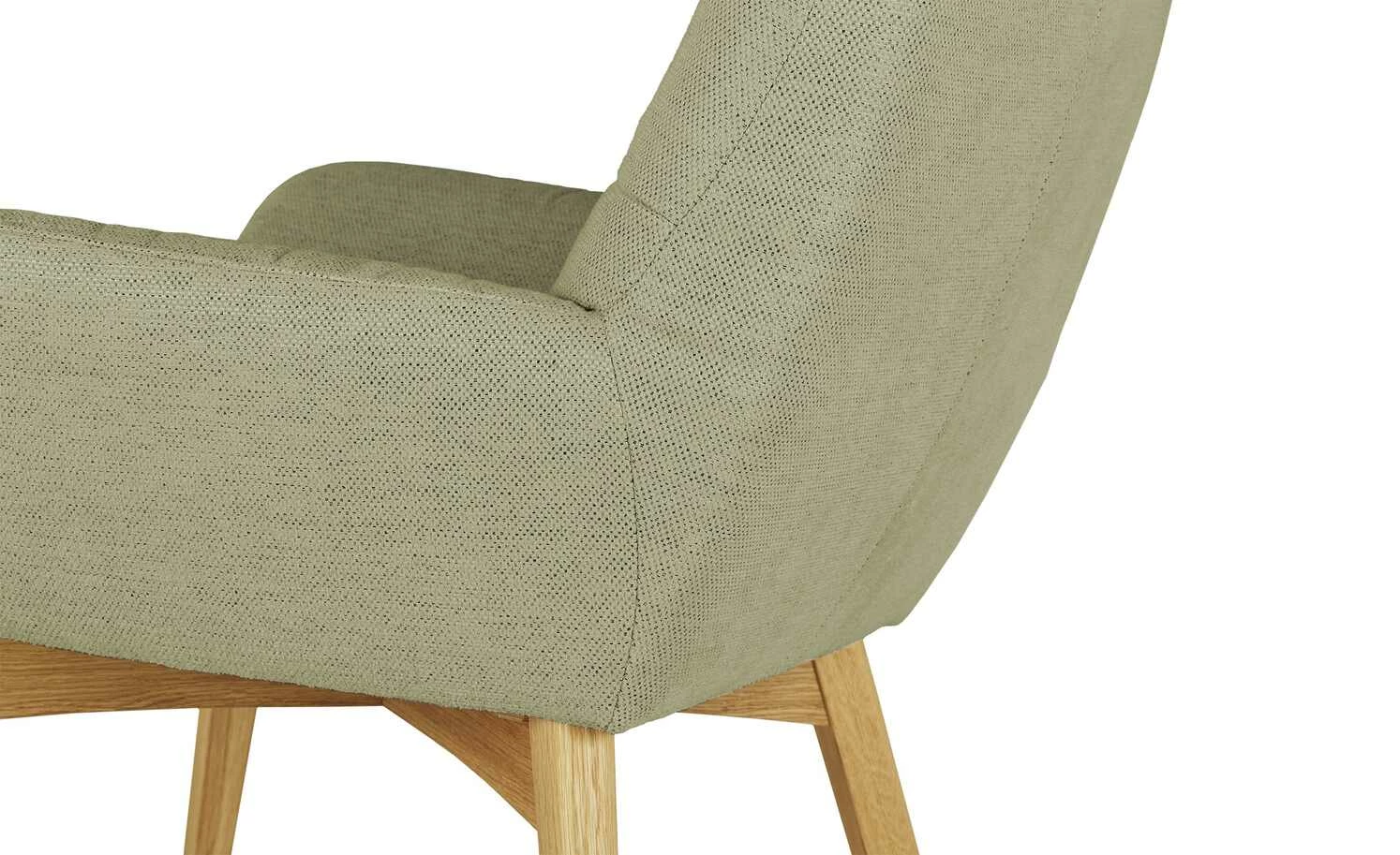 Natürliches Eichenholz sorgt beim Sessel Baltic Breeze Two für einen attraktiven, natürlichen Look. Das hochwertige Massivholz macht durch seine einzigartige Maserung und dem individuellen Farbton jeden Sessel zu einem Unikat. Die Holzoberfläche wurde geölt und kommt dadurch noch besser zur Geltung. Die robusten Füße tragen die sanft geschwungenen, einladenden Polster. Die hohe Rückenlehne ist leicht gebogen und verleiht dem Sessel elegante Kurven. Die Armlehnen besitzen abgerundete Ecken und unterstützen den einladenden Effekt des Sessels gekonnt. Dezente Nähte setzen liebevolle Details auf dem strapazierfähigen Bezug aus Flachgewebe. Der Sessel Baltic Breeze Two findet als charakterstarkes Einzelstück oder als attraktive Sitzgruppe in den meisten Raumkonzepten problemlos Platz.