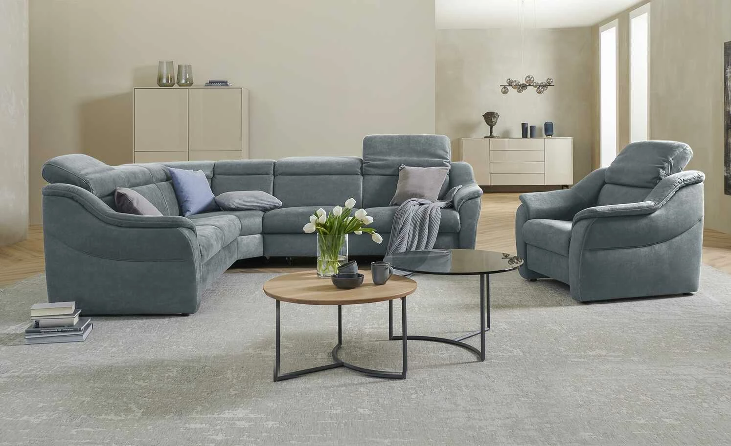 - Materialzusammensetzung Sitz- und Rückenbezug: Nutzschicht: 96% Polyester, 4% Polyurethan, Grundschicht: 100% Leder