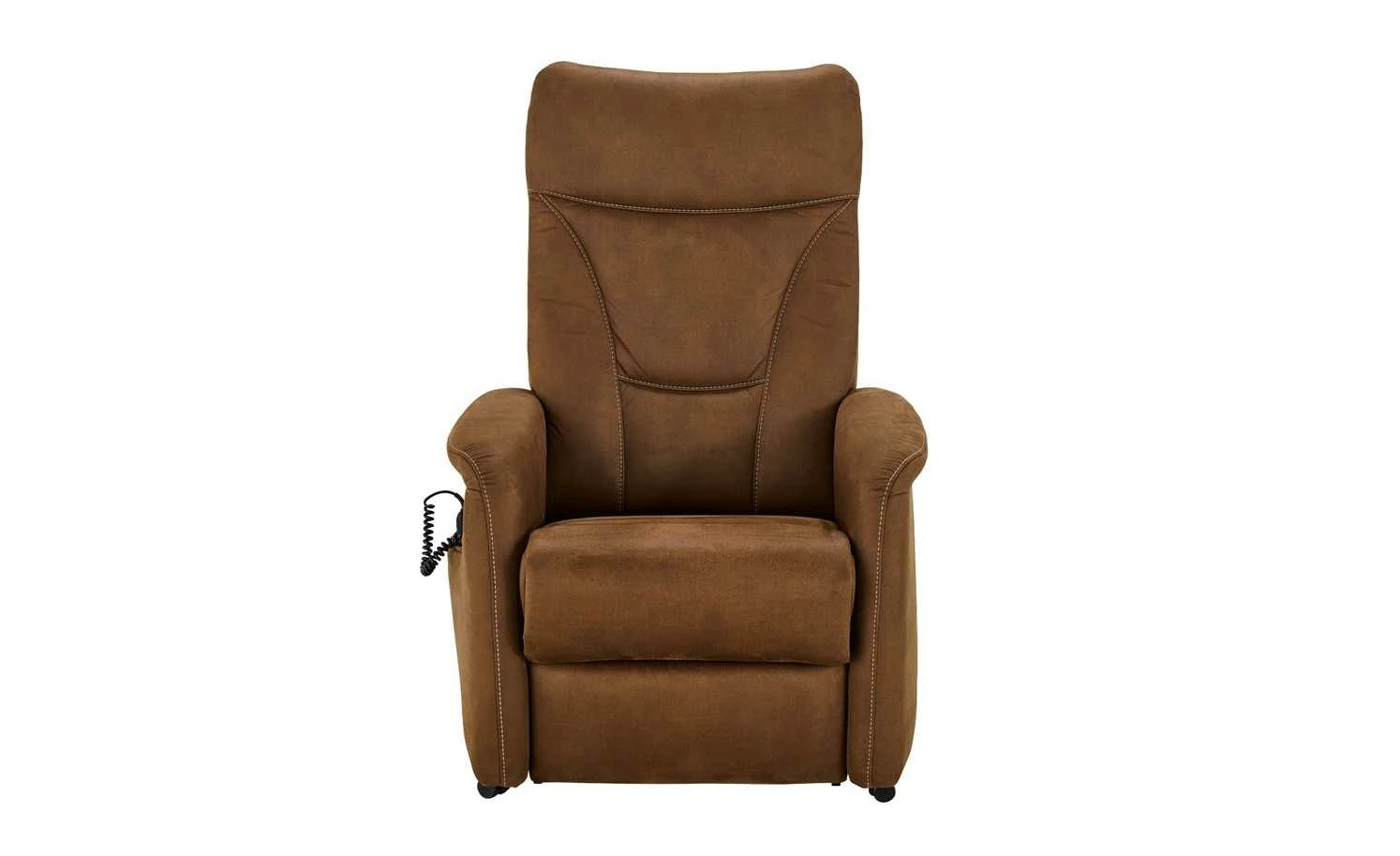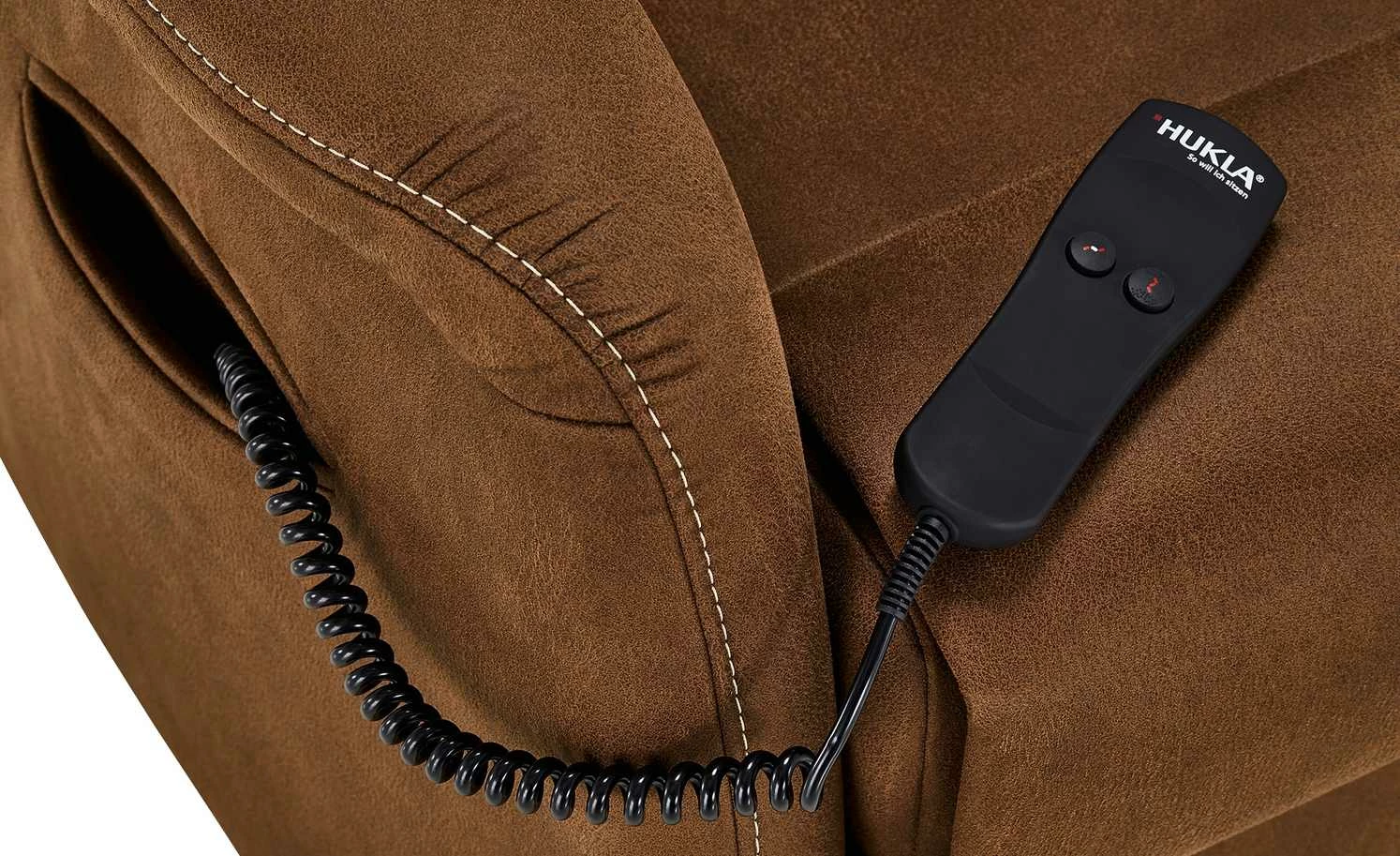 Der Fernsehsessel Manuel von Hukla bietet maximalen Komfort – ob beim Fernsehen, Lesen oder entspannten Relaxen. Manuel ist mit einem formstabilen, langlebigen Federkern ausgestattet. Hinzu kommen eine Schaumstoffpolsterung und eine Wellenunterfederung im Sitzbereich. Der Rücken ist so hoch, dass Sie sogar den Kopf anlehnen können. Die beiden weichen Armlehnen eignen sich zum Ablegen der Arme. Für noch mehr Komfort sorgt die elektrische Relaxfunktion. Per Knopfdruck können Sie die Rückenlehne nach hinten verstellen und die Beinablage ausgleiten lassen. Eine praktische Aufstehhilfe ist ebenfalls vorhanden. Der Sessel ist mit einer weichen Mikrofaser in Leder-Optik bezogen. Beigefarbene Ziernähte setzen harmonische Akzente.