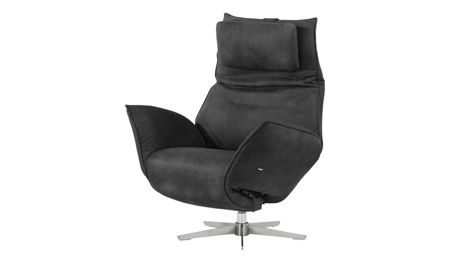Entdecken Sie Ihre Ruhe-Oase inmitten der alltäglichen Hektik: Der Ledersessel Safira lädt Sie zum Entspannen ein. Schwungvolle Linien und ein umlaufender Keder spielen mit dem kompakten und doch zierlichen Design. Der sternförmige Drehfuß besteht aus satiniertem Nickel und erzeugt eine attraktive Edelstahl-Optik. Die Polster von Safira scheinen den Sitzenden zu umarmen und bieten ihm höchsten Komfort. Das weiche Büffelleder umspannt den gesamten Sessel. Verstellen Sie die Sitzposition ganz einfach elektrisch und entspannen Sie nach einem langen Tag. Den Kopfteil können Sie je nach Bedarf ganz unkompliziert verstellen.