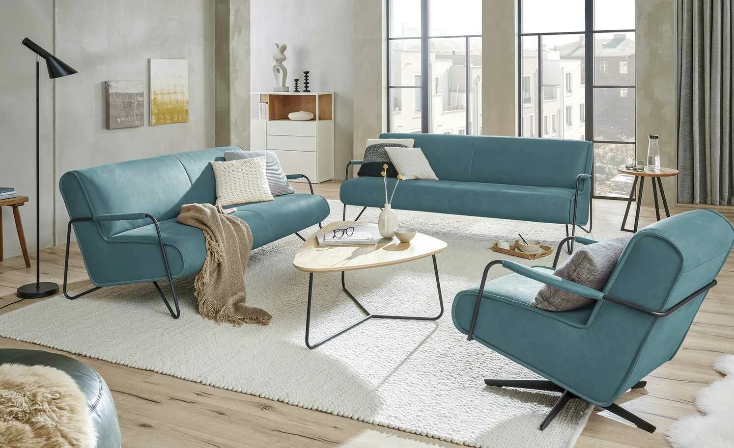 Modern oder doch Retro? Der Sessel Gomera von KOINOR ist in beiden Welten zuhause. Der mattschwarze Drehfuß trägt den komfortablen Sessel. Das dunkle Metall ist auch an den verbundenen Armlehnen zu finden und setzt dort einen gekonnten Kontrast zum Bezug. Dieser besteht aus hochwertigem Echtleder und wird mit einer dekorativen Kontrastnaht veredelt. Platzieren Sie den Sessel als starkes it-Piece oder kombinieren Sie es mit den gleichnamigen Sofas der Serie. So entsteht eine Sitzgruppe, die in jedem Raum zum Eyecatcher wird. Unikate gefertigt in Bayern: Die Marke KOINOR steht für einzigartige Komfortfunktionen und individuelles Design. Unter Verwendung hochwertigster Materialien entstehen Möbel mit Vorzeigecharakter.