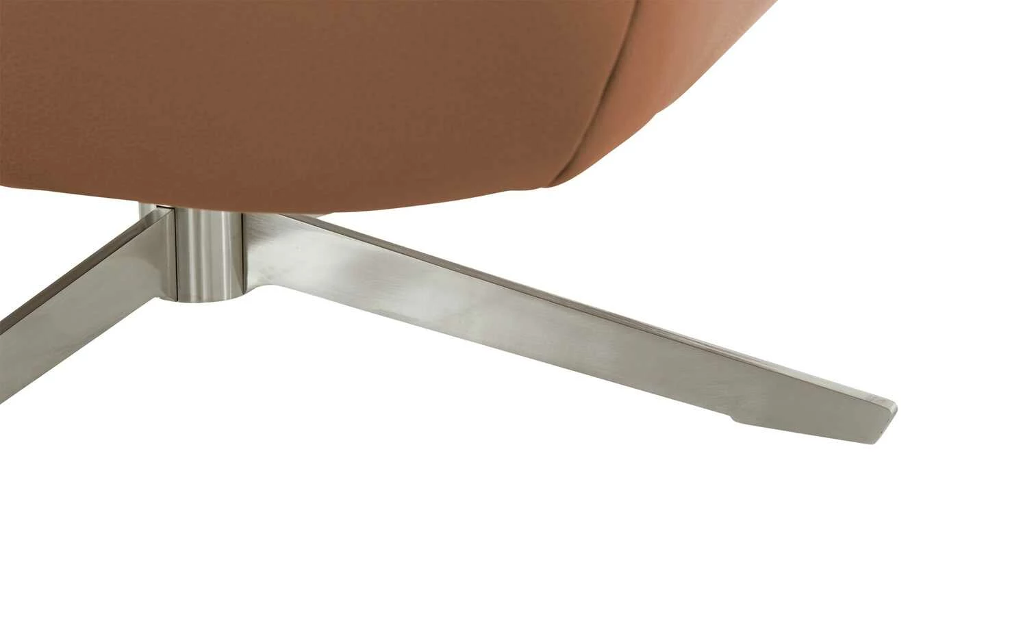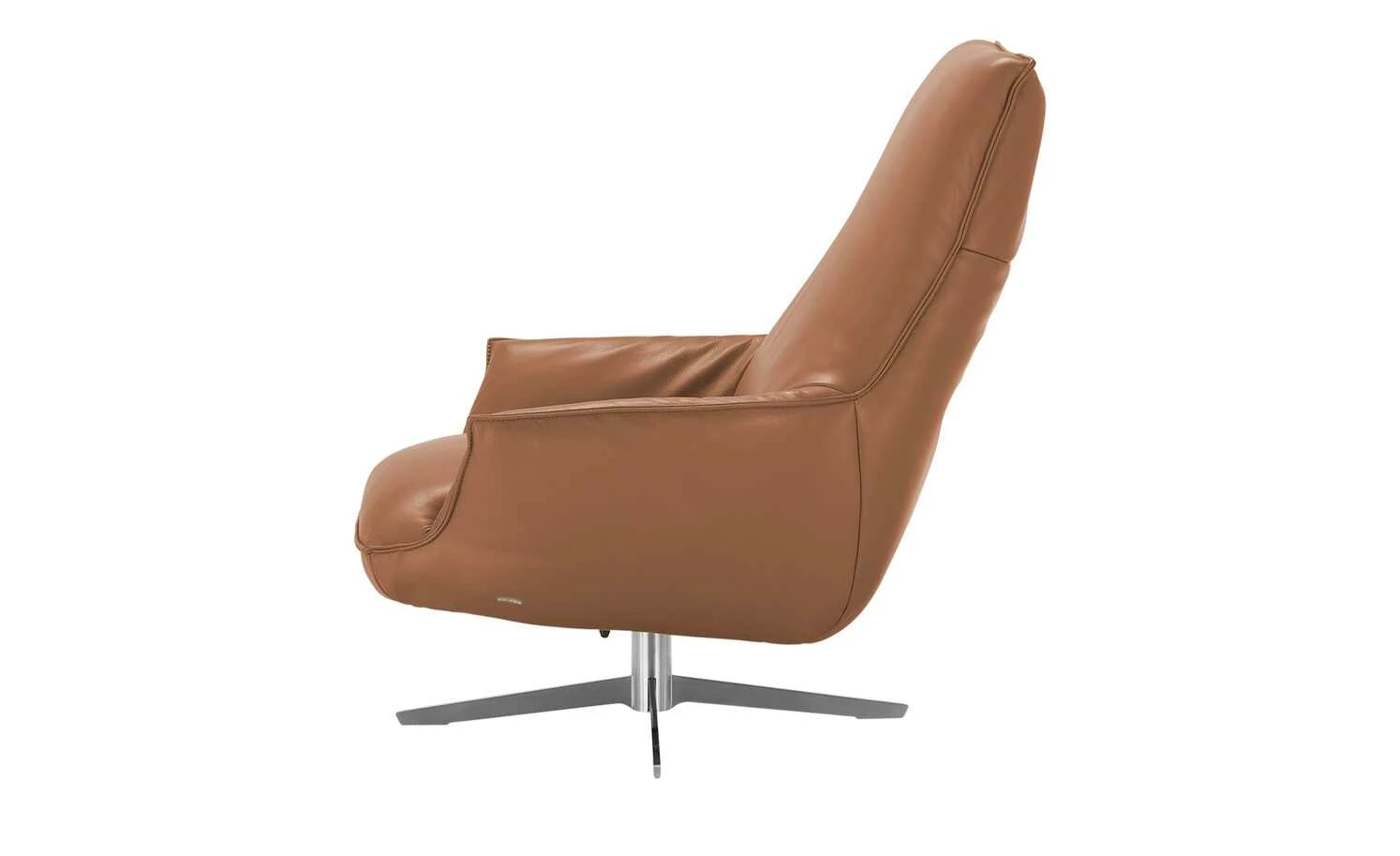 Der glänzende Echtlederbezug macht den Drehsessel Isira zu einem echten Hingucker. Das Metalldrehkreuz in Edelstahl-Optik harmoniert mit dem Leder und veredelt das Gesamterscheinungsbild. Die Armlehnen lassen sich ebenso wie das Kopfteil problemlos verstellen. Die Polsterung aus hochwertigem Kaltschaum und die Wellenunterfederung sorgen für langanhaltenden und hohen Sitzkomfort. Der Drehsessel Isira passt in nahezu alle Einrichtungsstile und ist in weiteren Farben erhältlich.
