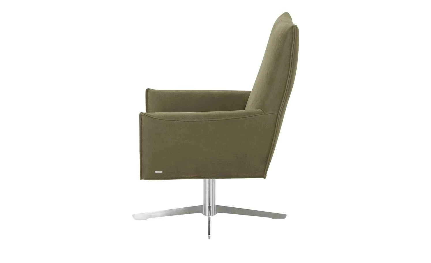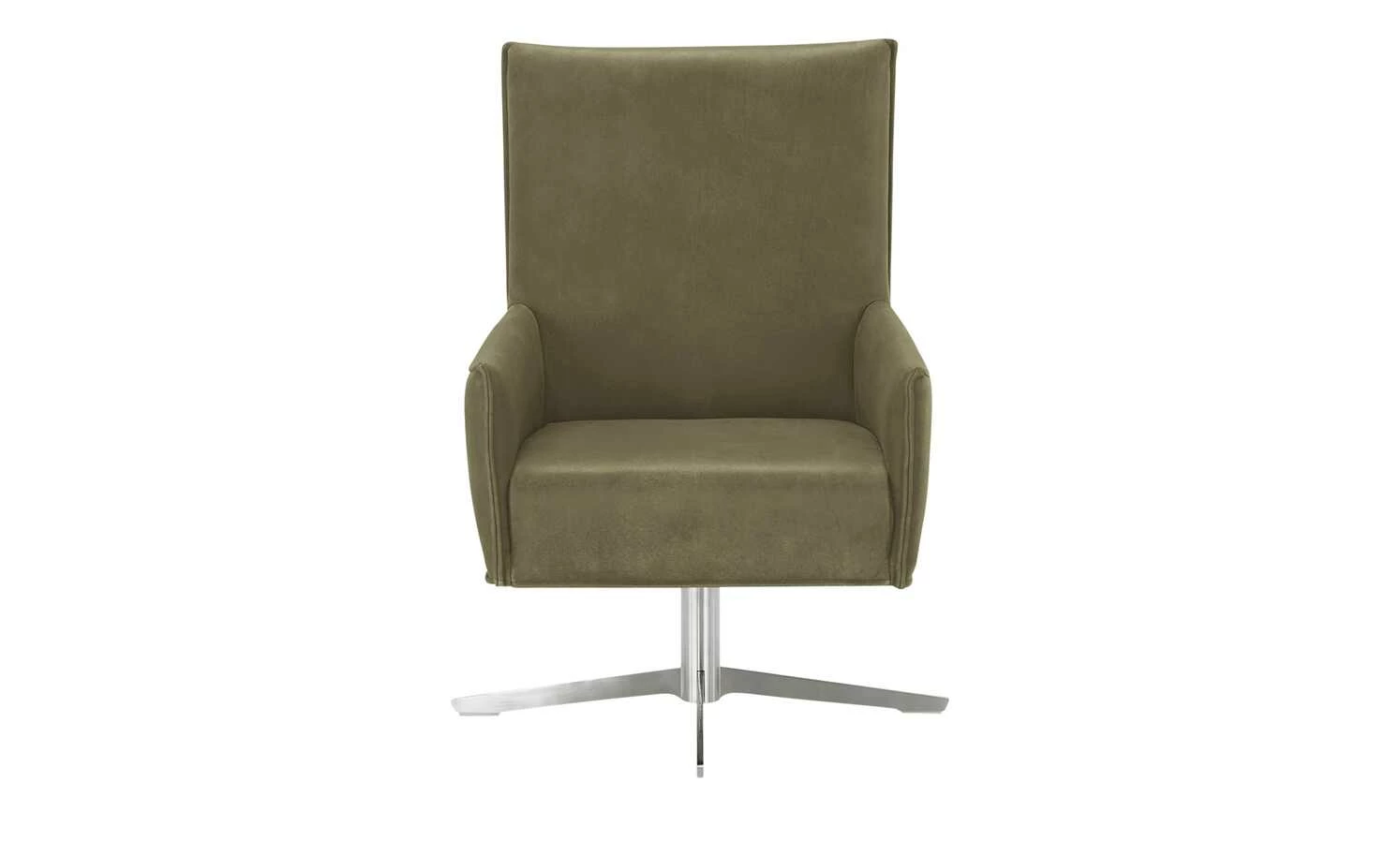 Der Drehsessel Ive vereint einzigartiges Design und Komfort. Durch das Zusammenspiel aus echtem Büffelleder und robustem Metall in Edelstahl-Optik entsteht eine zeitlose, moderne Optik. Das hochwertige Leder besitzt einen dekorativen Keder und hebt sich vom zierlichen Metallgestell mit den vier schmalen Schwertkufen ab. Unser Tipp: Kombinieren Sie den Sessel mit dem Hocker Ive, um nach einem langen Tag die Füße hochzulegen.