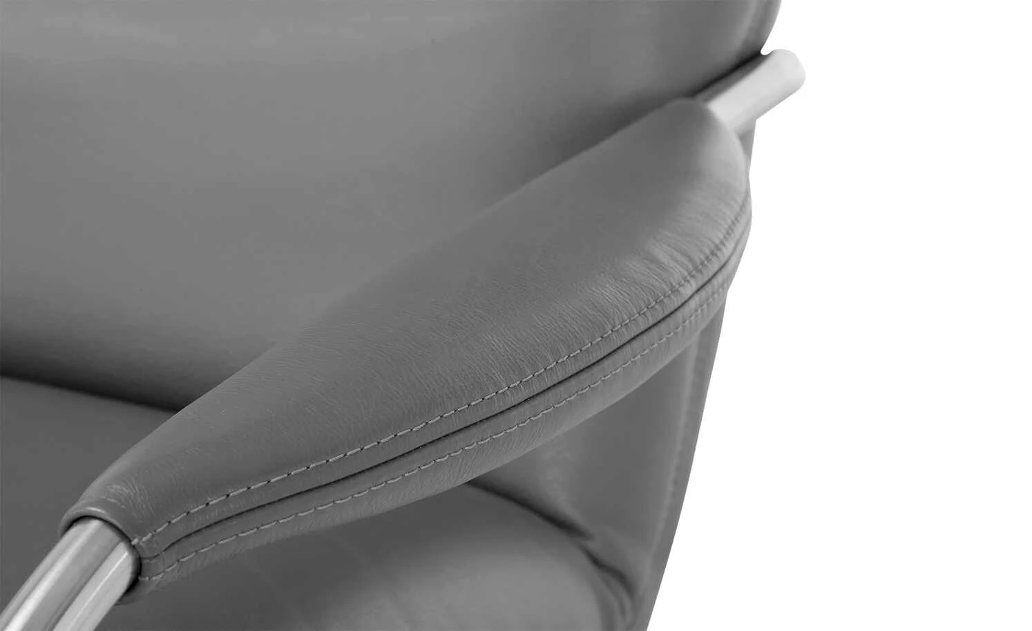Der Sessel Jacy von KOINOR präsentiert sich in moderner Eleganz und vereint Ruhe und Dynamik. Durch das verspielte Designgestell in attraktiver Edelstahl-Optik besitzt der Freischwinger-Sessel einen besonders langen Federweg. Der Bezug aus hochwertigem Echtleder ist mit liebevollen Details versehen, welche dem Sessel eine zierliche Eleganz verleihen. Die dekorative Doppelnaht und zwei Armlehnen mit flacher Auflagefläche veredeln das Gesamterscheinungsbild gekonnt. Durch das bewegliche Kopfteil und die dicke Polsterung genießen Sie höchsten Komfort. Unser Tipp: Kombinieren Sie den Sessel mit dem gleichnamigen Hocker Jacy, um nach einem langen Tag die Füße entspannt hochzulegen.