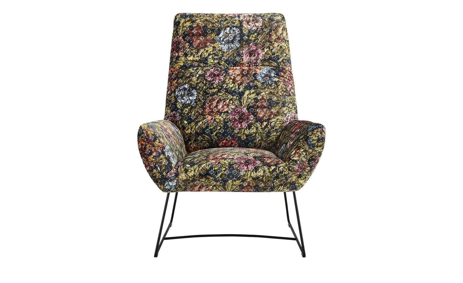 Der Sessel Master ist ein Eyecatcher für das Wohnzimmer. Als auffälliges Einzelstück zu einer sonst eher gedeckten Einrichtung macht er eine gute Figur. Master hat einen weichen Velourbezug mit einem bunten Blumenmuster. Leichte Used-Effekte runden den besonderen Look ab. Master verfügt über eine hohe Rückenlehne, die zum Ankuscheln einlädt. Der gesamte Sessel ist mit komfortablen PUR Schaum gepolstert. Ein Kufengestell aus Metall sorgt für einen optimalen Stand.
