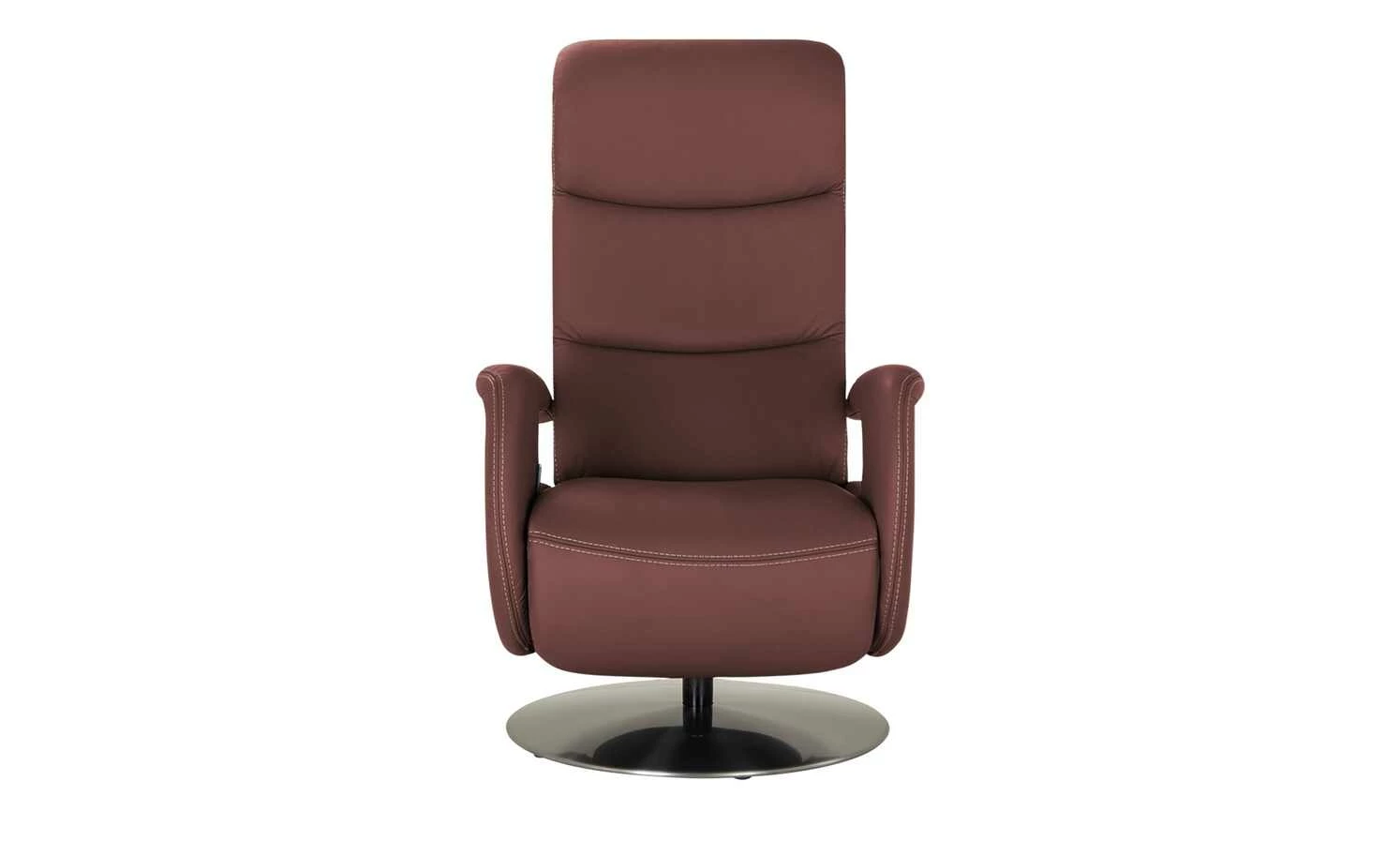 Der Ledersessel Franzi ist durch die dekorative Kontrastnaht und die modernen Armlehnen ein echter Blickfang in jedem Zimmer. Der Metalldrehteller in Edelstahl-Optik hebt sich gekonnt vom Leder ab. Beim Drehsessel Franzi dreht sich alles um Ihren Komfort: Durch die Gasdruckfeder ist das Verstellen der Rückenlehne kinderleicht. Das Fußteil reagiert auf Ihren Körperdruck. So haben Sie im Handumdrehen einen Ort zum Entspannen und Füße hochlegen. Die Wellenunterfederung und der hochwertige PUR-Schaum sorgen für langanhaltenden Sitzkomfort.