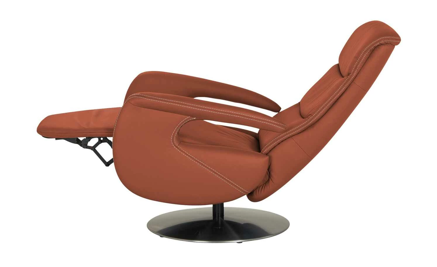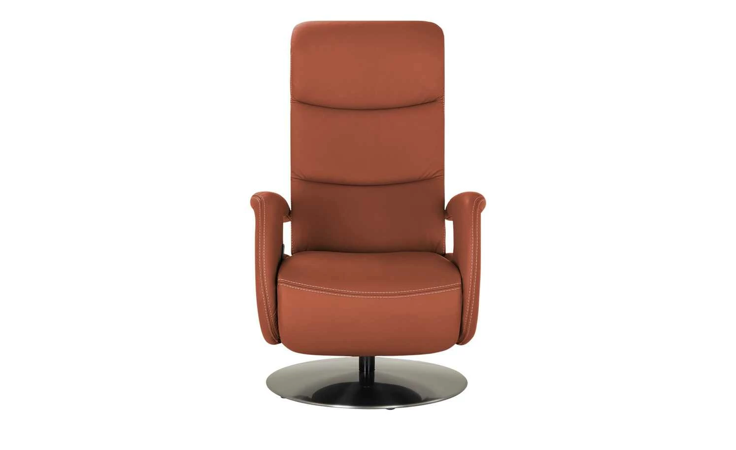 Der Ledersessel Franzi ist durch die dekorative Kontrastnaht und die modernen Armlehnen ein echter Blickfang in jedem Zimmer. Der Metalldrehteller in Edelstahl-Optik hebt sich gekonnt vom Leder ab. Beim Drehsessel Franzi dreht sich alles um Ihren Komfort: Durch die Gasdruckfeder ist das Verstellen der Rückenlehne kinderleicht. Das Fußteil reagiert auf Ihren Körperdruck. So haben Sie im Handumdrehen einen Ort zum Entspannen und Füße hochlegen. Die Wellenunterfederung und der hochwertige PUR-Schaum sorgen für langanhaltenden Sitzkomfort.