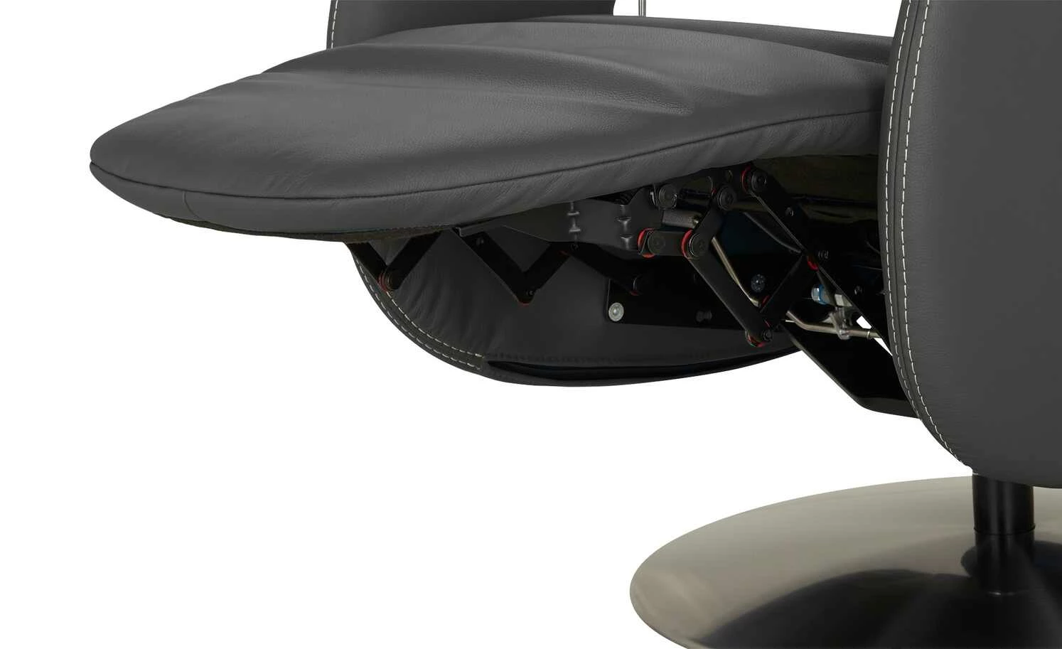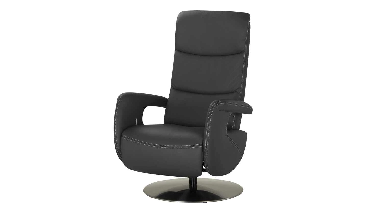 Der Ledersessel Franzi ist durch die dekorative Kontrastnaht und die modernen Armlehnen ein echter Blickfang in jedem Zimmer. Der Metalldrehteller in Edelstahl-Optik hebt sich gekonnt vom Leder ab. Beim Drehsessel Franzi dreht sich alles um Ihren Komfort: Durch die Gasdruckfeder ist das Verstellen der Rückenlehne kinderleicht. Das Fußteil reagiert auf Ihren Körperdruck. So haben Sie im Handumdrehen einen Ort zum Entspannen und Füße hochlegen. Die Wellenunterfederung und der hochwertige PUR-Schaum sorgen für langanhaltenden Sitzkomfort.