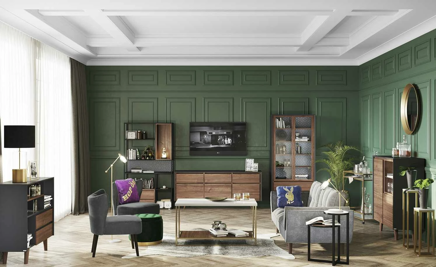- Mehr zum Material: Füße aus Gummibaum, Bezug: Mikrofaser in Samt-Optik