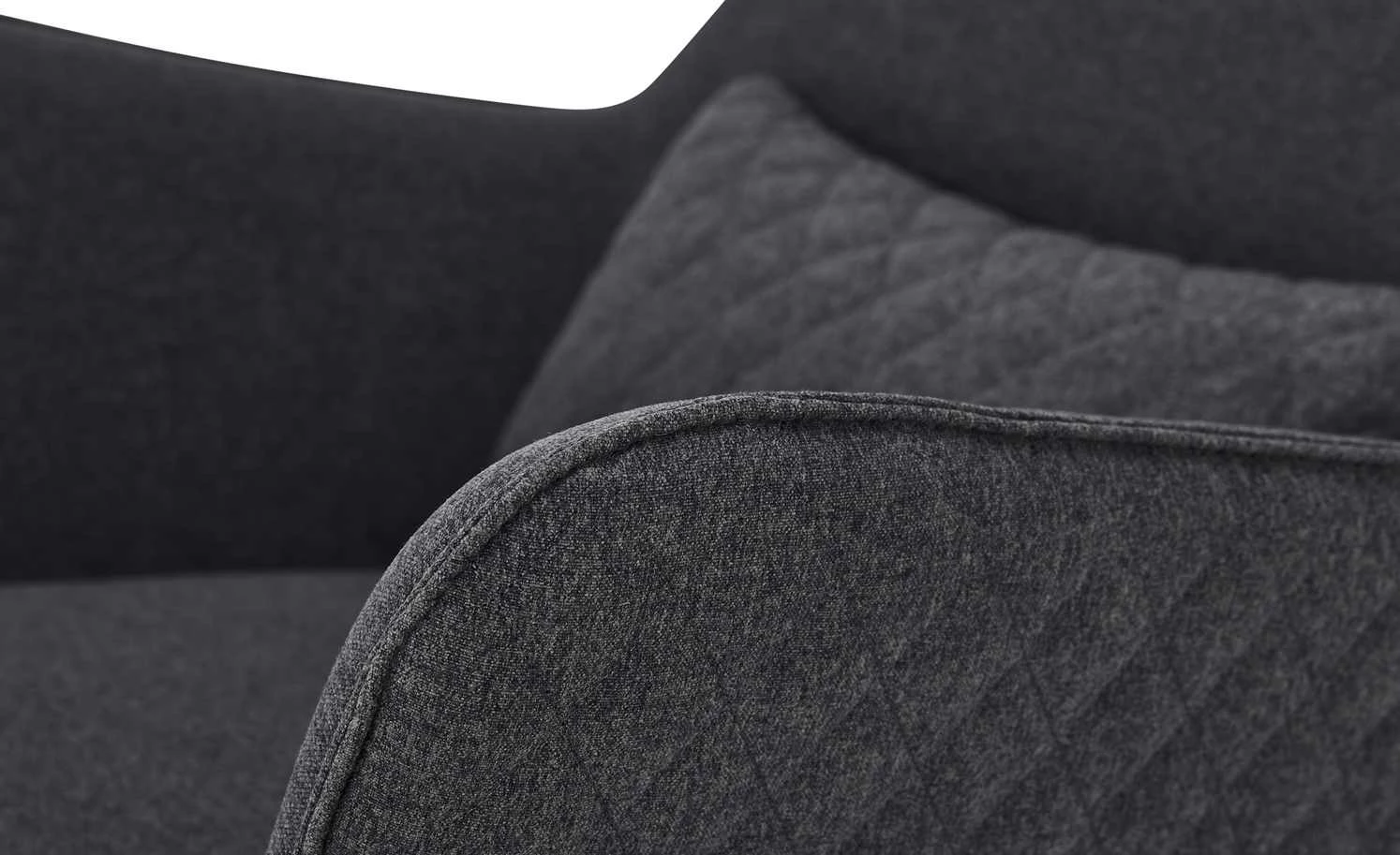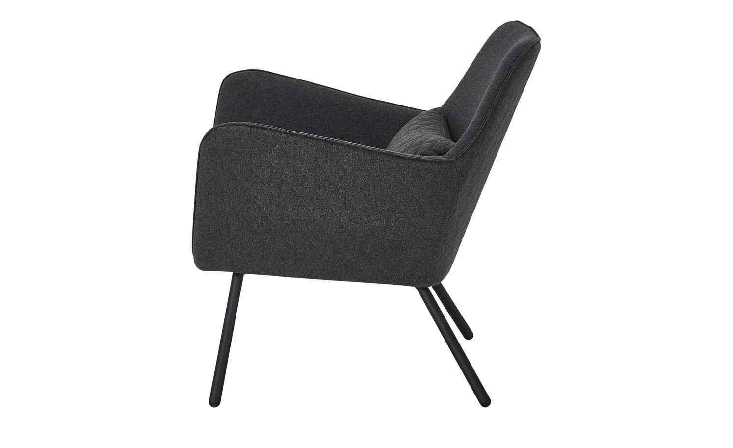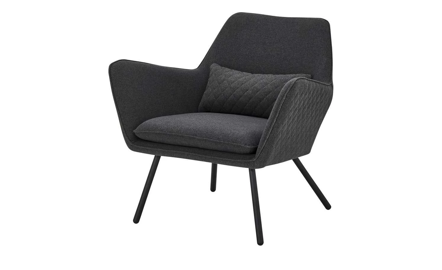 Der Sessel Stine fällt durch seinen stylischen Look auf. Damit passt er wunderbar zu modernen, urbanen Einrichtungen. Der Bezug aus meliertem Flachgewebe ist auf der Rückseite und an den Seiten der Armlehnen rautenförmig gesteppt. Auch beim Nierenkissen wird das attraktive Design gekonnt aufgegriffen. Stine sieht aber nicht nur gut aus, sondern ist auch bequem. Dafür sorgt die weiche Polsterung mit zusätzlichem Sitz- und Nierenkissen.