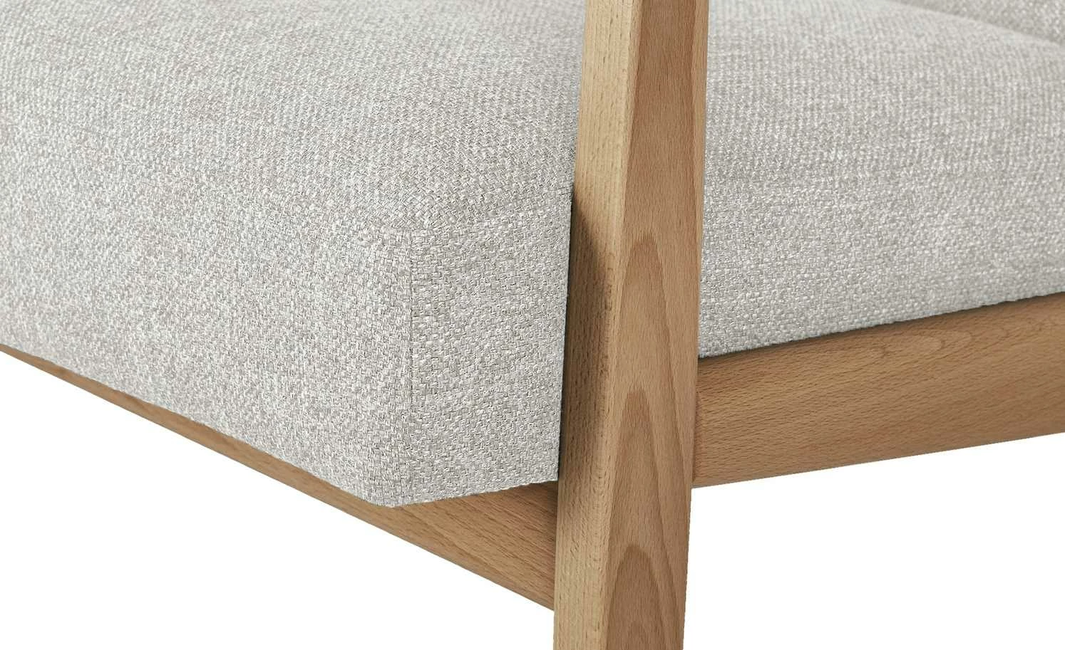 Wenn sich skandinavisches Design und Komfort vereinen, dann ist das Ergebnis: Der Sessel Rada. Sitz und Rückenlehne sind weich gepolstert und mit einem melierten Stoff bezogen. Das stylische, leicht melierte Silbergrau ist ein Kontrast zum Gestell. Es ist aus massiver Buche Natur. Das Holz punktet mit seinem hellen, freundlichen Ton und der dezenten Maserung. Die offene Gestaltung lässt Rada luftig und leicht wirken.