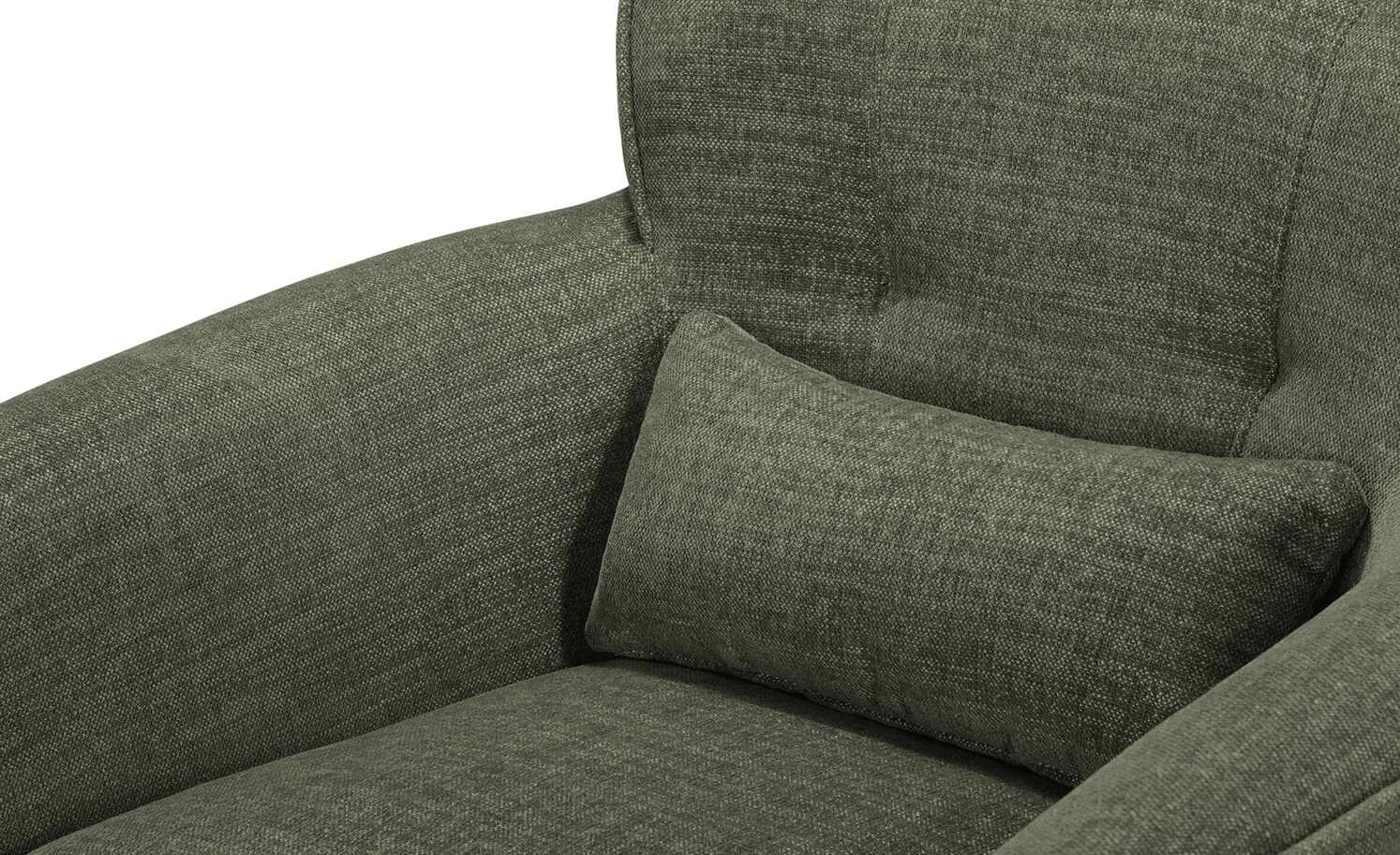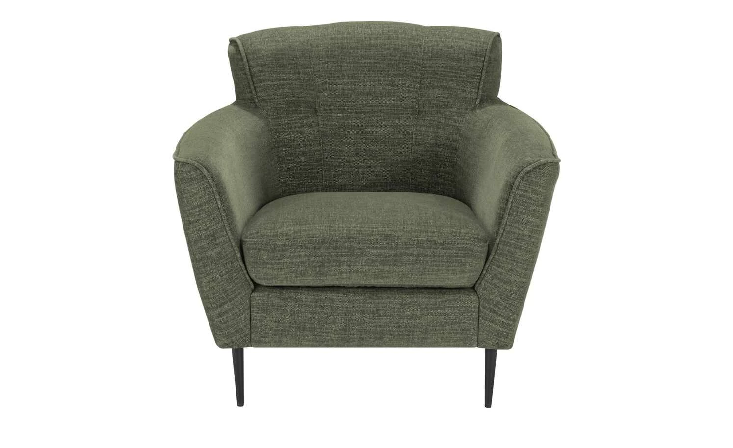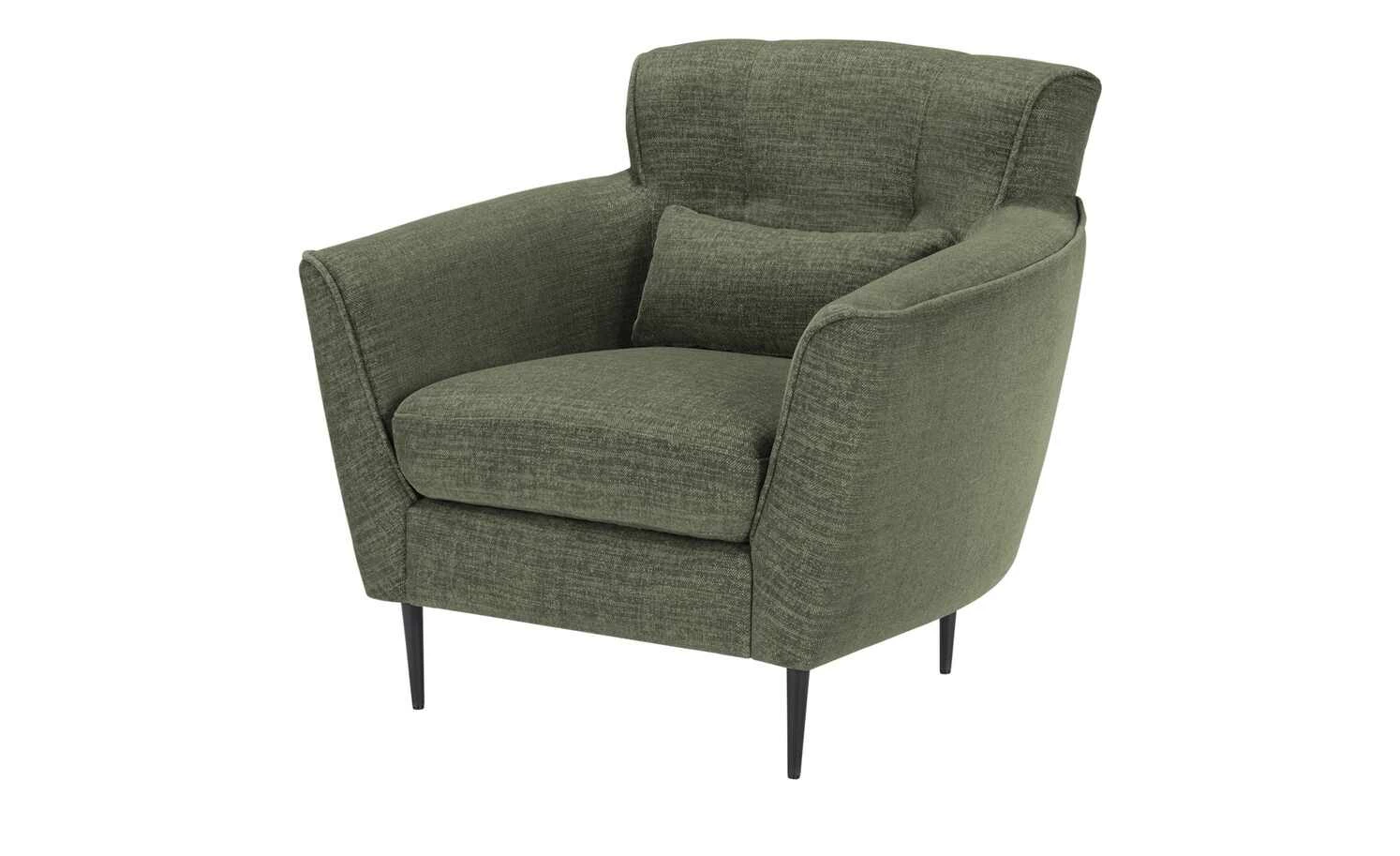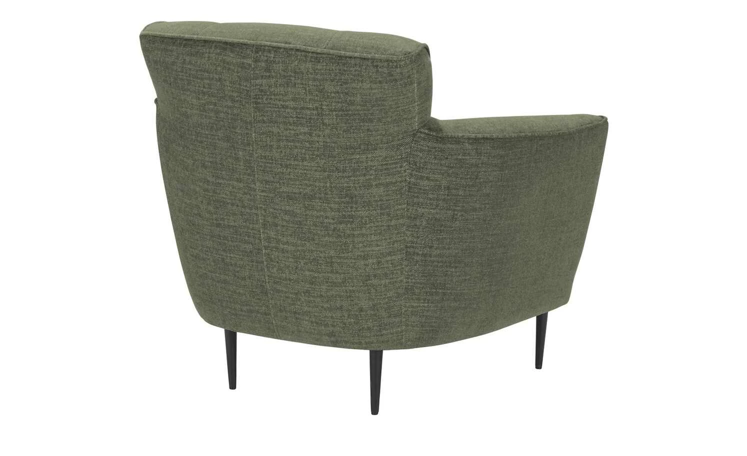 Bei diesem Sessel gehen Komfort, Nachhaltigkeit und Design Hand in Hand. Der einladende Sessel besitzt eine dicke, hochwertige Schaumstoffpolsterung und Armlehnen in Komforthöhe. Auch die dezent gesteppte Rückenlehne ist gepolstert. So können Sie sich entspannt anlehnen und den Abend mit einem Buch oder vor dem Fernseher genießen. Der strapazierfähige Bezug aus Flachgewebe besteht aus recycelten Materialien und harmoniert mit den schwarzen Metallfüßen.