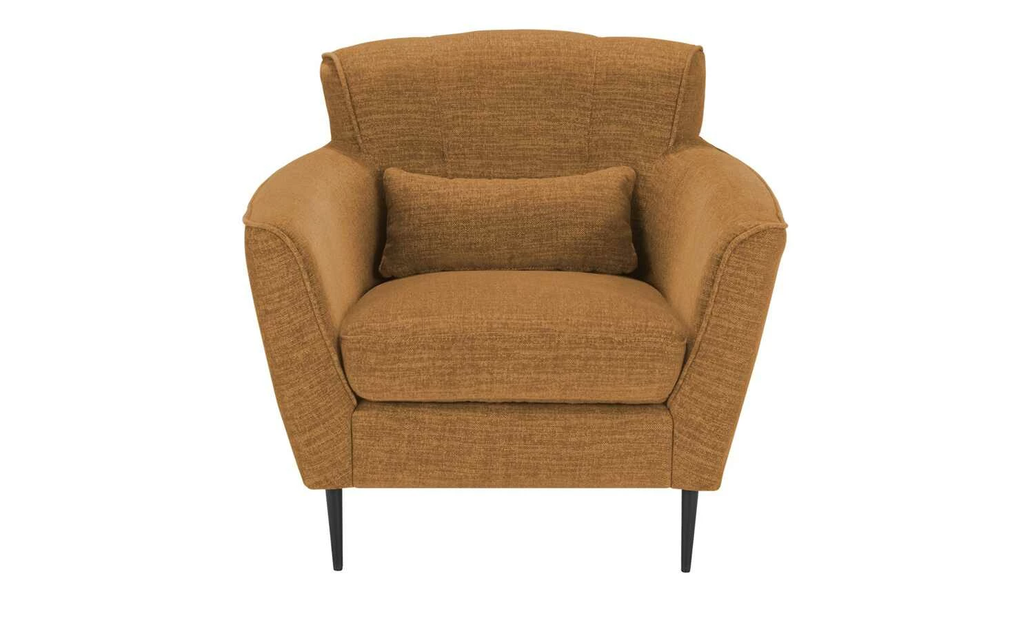 Bei diesem Sessel gehen Komfort, Nachhaltigkeit und Design Hand in Hand. Der einladende Sessel besitzt eine dicke, hochwertige Schaumstoffpolsterung und Armlehnen in Komforthöhe. Auch die dezent gesteppte Rückenlehne ist gepolstert. So können Sie sich entspannt anlehnen und den Abend mit einem Buch oder vor dem Fernseher genießen. Der strapazierfähige Bezug aus Flachgewebe besteht aus recycelten Materialien und harmoniert mit den schwarzen Metallfüßen.