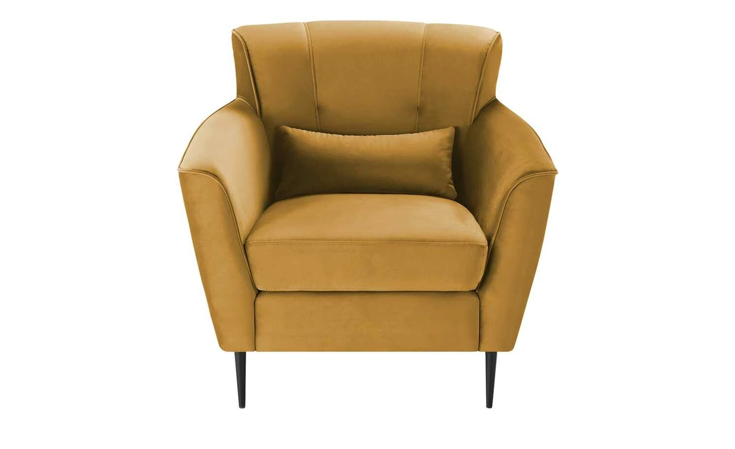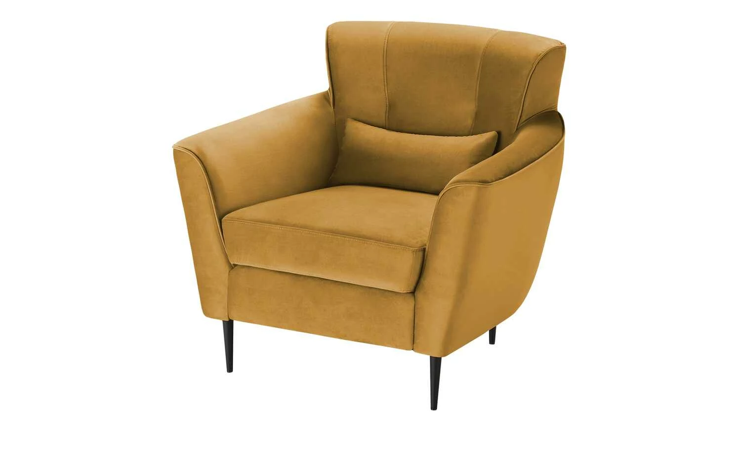 Bei diesem Sessel gehen Komfort und edles Design Hand in Hand. Der einladende Sessel besitzt eine dicke, hochwertige Schaumstoffpolsterung und Armlehnen in Komforthöhe. Auch die dezent gesteppte Rückenlehne ist gepolstert. So können Sie sich entspannt anlehnen und den Abend mit einem Buch oder vor dem Fernseher genießen. Der samtig weiche, pflegeleichte Bezug schimmert leicht und harmoniert gekonnt mit den schwarzen Metallfüßen.