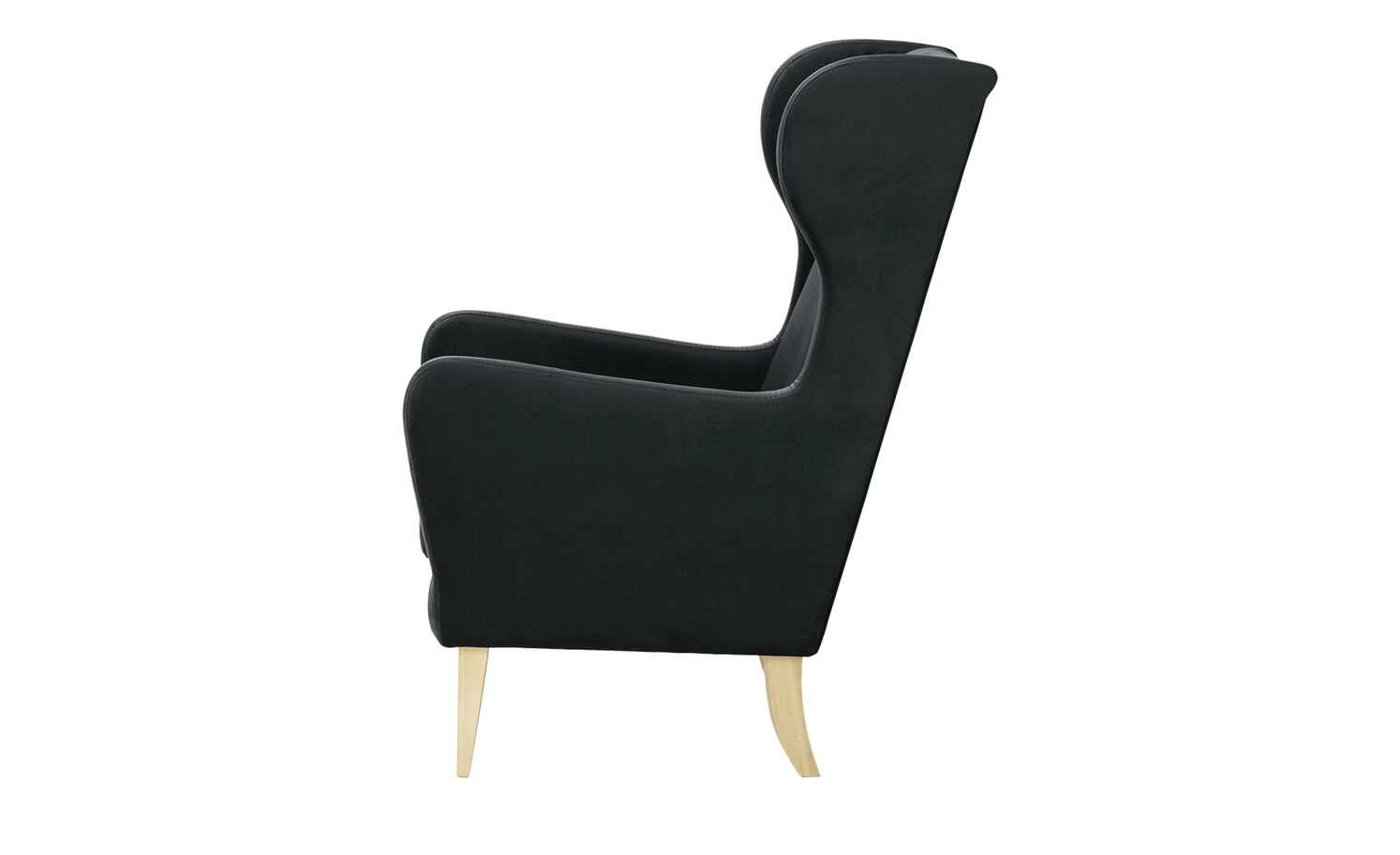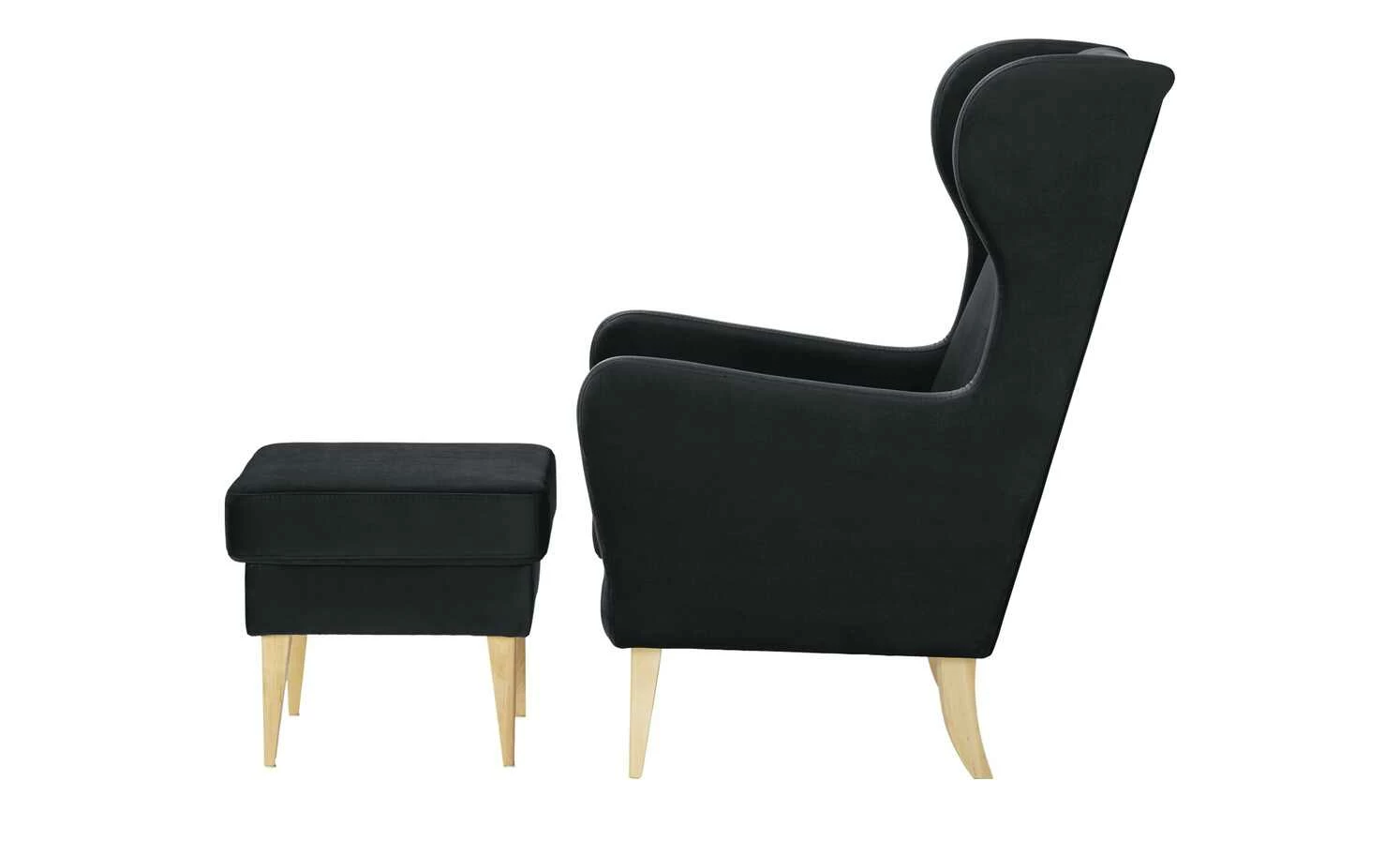 Elegant geschwungene Ohren und Armlehnen machen diesen Sessel zum einladenden Eyecatcher. Der samtig weiche Bezug aus pflegeleichtem Polyester betont das edle Erscheinungsbild gekonnt. Zusammen mit den hellen Massivholzfüßen aus Birkenholz entsteht ein Stil, der sich problemlos in zahlreiche Raumkonzepte integrieren lässt. Die hochwertige Schaumstoffpolsterung wird von einer Gurtfederung unterstützt, sodass für langanhaltenden Sitzkomfort gesorgt ist. Übrigens: Kombinieren Sie den Ohrensessel mit dem gleichnamigen Polsterhocker, um Ihre Füße nach einem langen Tag entspannt hochzulegen.