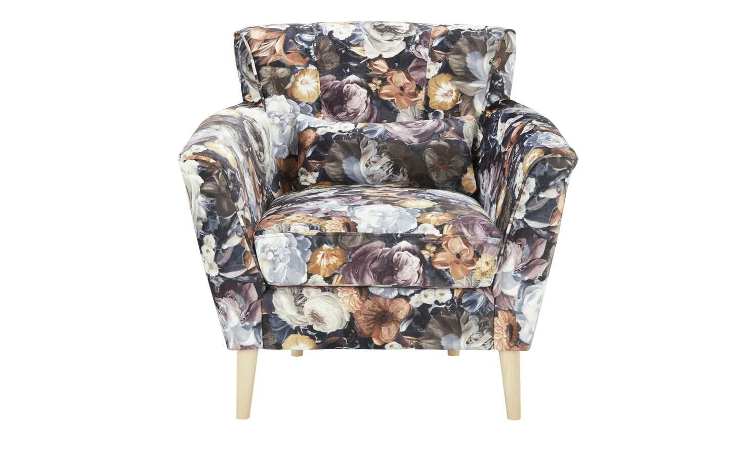 Mit seinem floralen, frühlingshaften Bezug wird dieser Sessel garantiert zum Blickfang. Der einladende Sessel besitzt eine dicke, hochwertige Schaumstoffpolsterung und Armlehnen in Komforthöhe. Auch die dezent gesteppte Rückenlehne ist gepolstert. So können Sie sich entspannt anlehnen und den Abend mit einem Buch oder vor dem Fernseher genießen. Der samtig weiche, pflegeleichte Bezug harmoniert gekonnt mit den hellen, freundlichen Füßen aus Erlenholz.