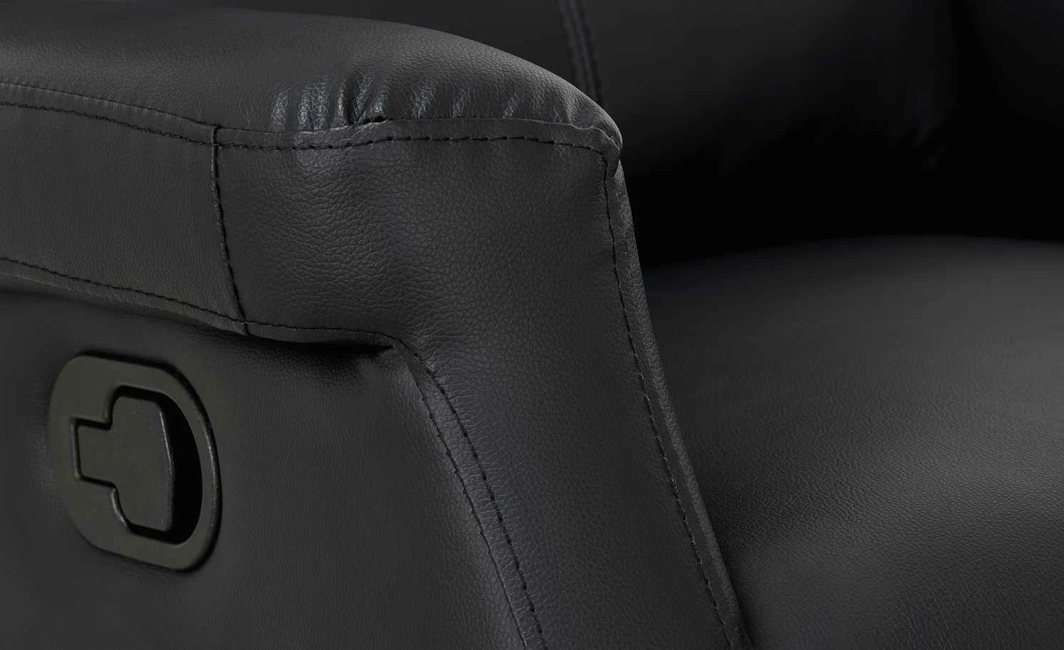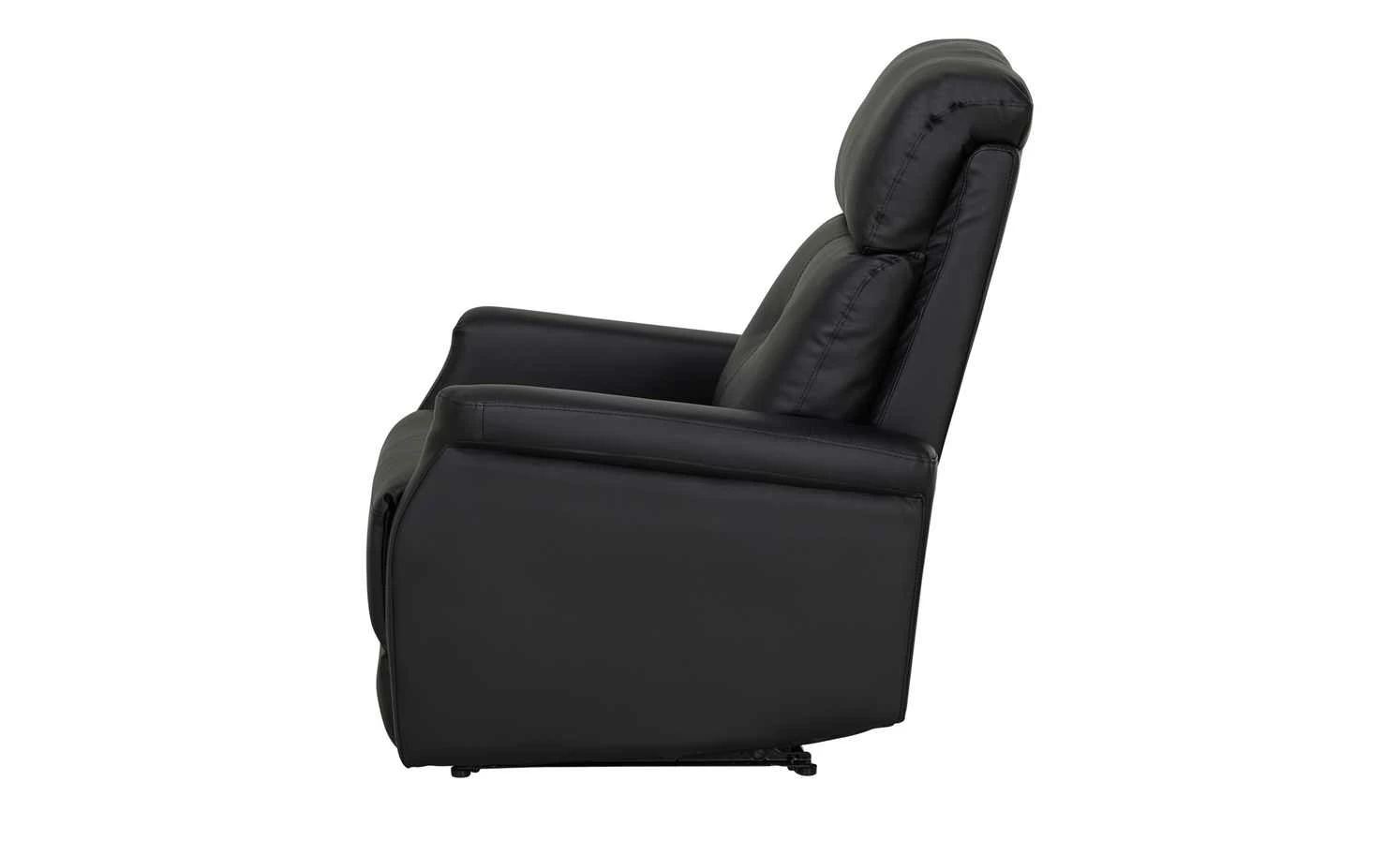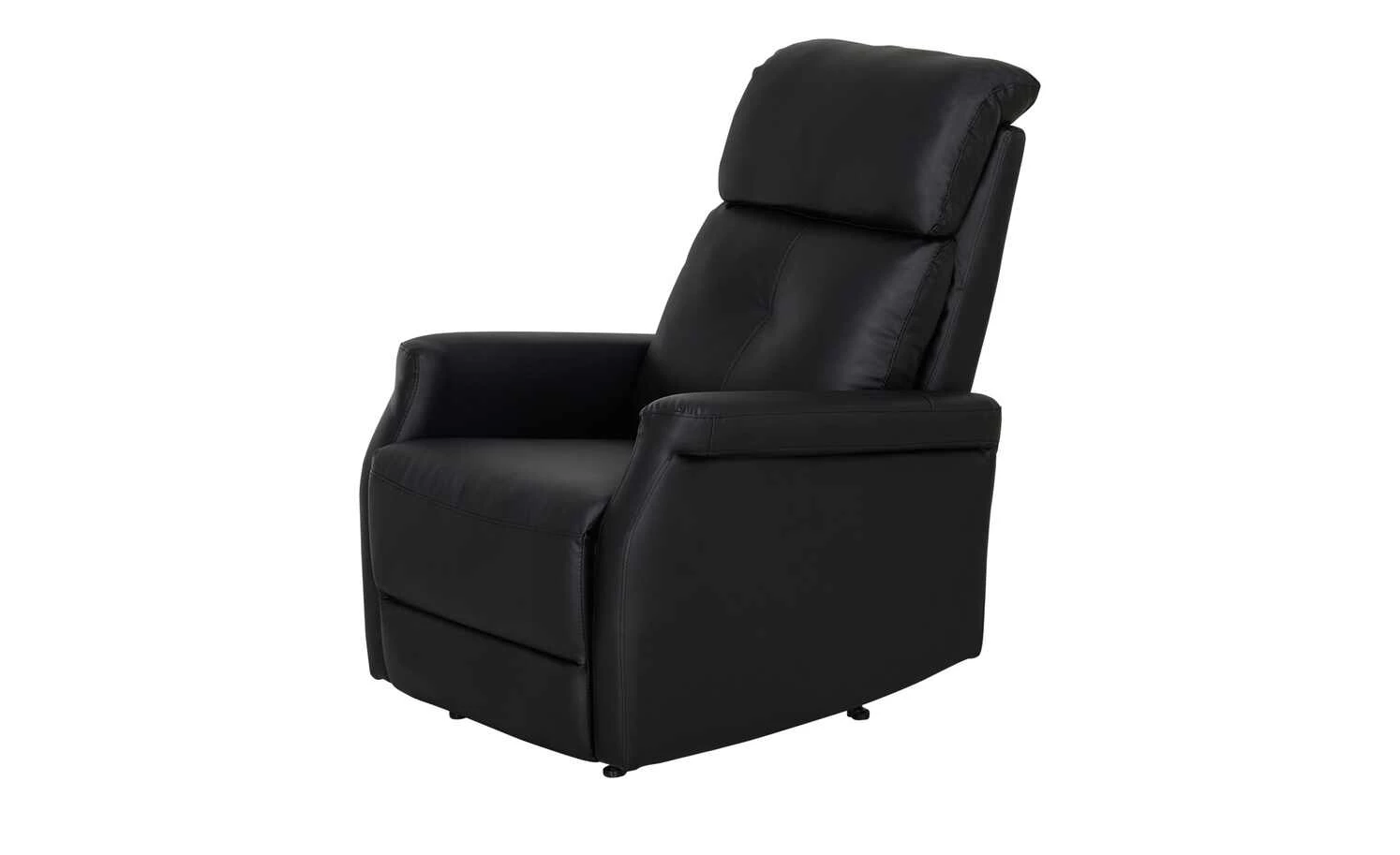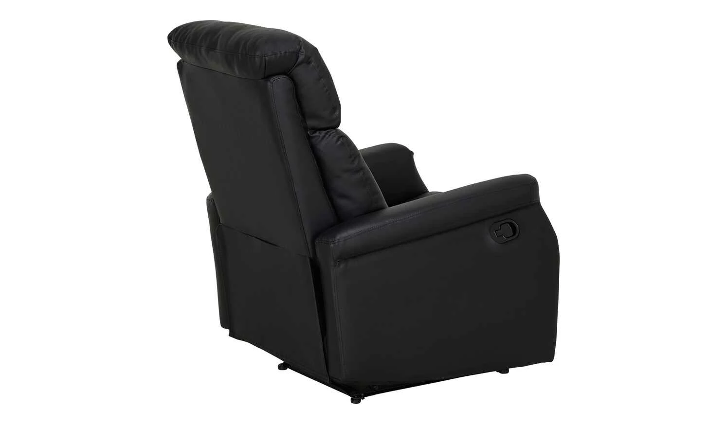 Machen Sie es sich auf dem Fernsehsessel Solea richtig gemütlich. Er ist weich gepolstert und verfügt über eine hohe Rückenlehne. Das Kopfpolster ist extra dick und auch die Armlehnen haben eine angenehme Höhe. Für noch mehr Komfort sorgt die manuelle Relaxfunktion. Dabei klappt die Rückenlehne nach hinten und ein Fußteil gleitet aus. Lehnen Sie sich an und legen Sie dabei die Beine hoch. Der gesamte Sessel ist mit schwarzem Kunstleder bezogen.