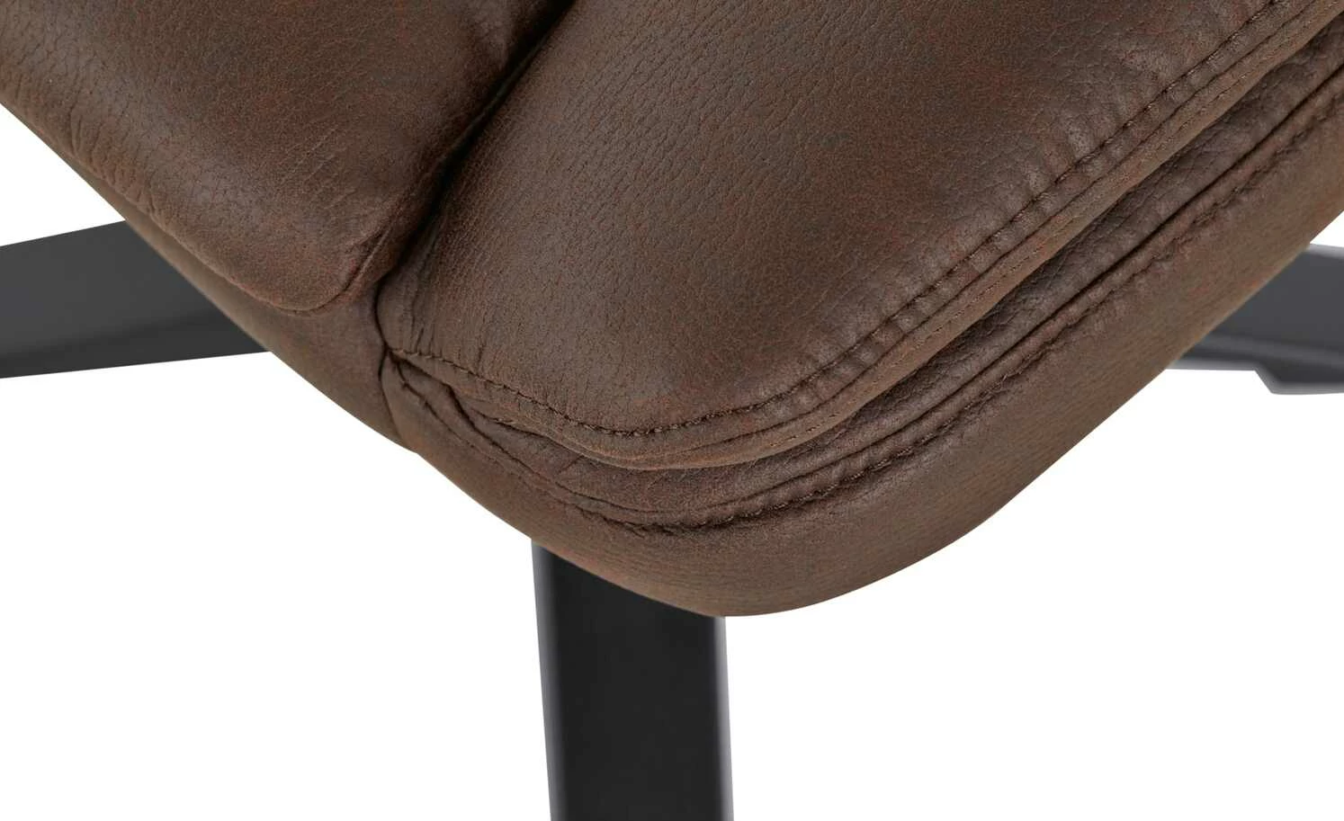 Dunkles Kunstleder und abgesteppte Polsterbereiche: Der Relaxsessel Henry wirkt sofort gemütlich. Machen Sie es sich bequem: Verstellen Sie die Rückenlehne und legen Sie die Füße auf dem mitgelieferten Drehhocker hoch. Die dicke Schaumstoffpolsterung und die Nosag-Wellenunterfederung gewährleisten einen langanhaltenden, hohen Sitzkomfort.